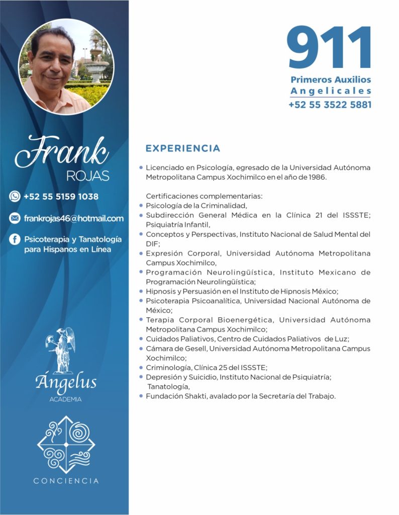 El Equipo “911 Ayuda Angelical” está conformado por 17 Terapeutas de México, Uruguay y Estados Unidos, dispuestos a donar dos consultas psicoterapéuticas gratuitas a cualquier persona que necesite ayuda y no cuente con recursos económicos para pagar una consulta.